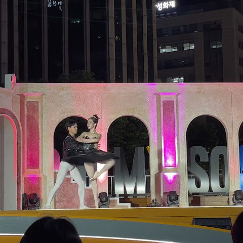 20250530 야외 도서관 행사가 진행 중이고, 오늘 밤 발레 공연도 있습니다. 댄서들의 강인함과 아름다움을 가까이서 볼 수 있어서 정말 좋았습니다.