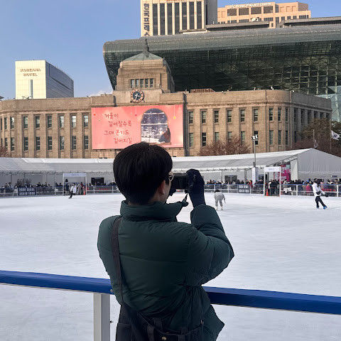 겨울 저녁, 시울시청 앞 광장에 임시 설치된 스케이트장이 마치 무대처럼 느껴지더라구요. 스케이트 타는 사람들을, 근처에 있다보니 한참 보게 되네요. 의외로 낭만 있음.
