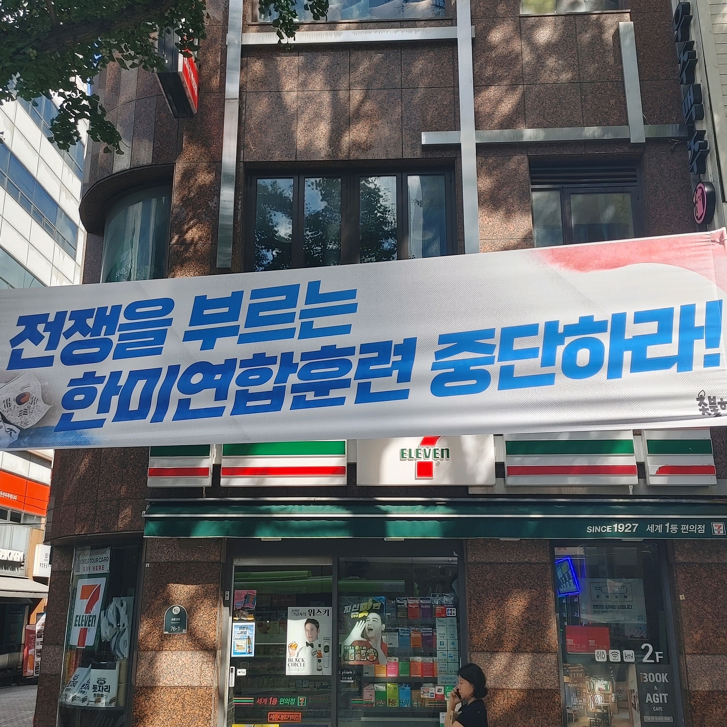 서울광장 인근에 불어있는 현수막입니다! 한미연합 훈련이 전쟁