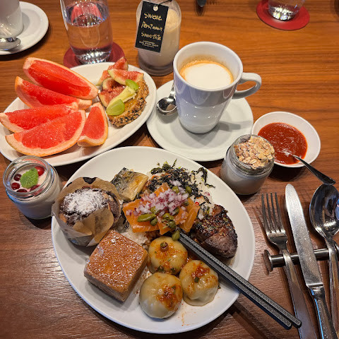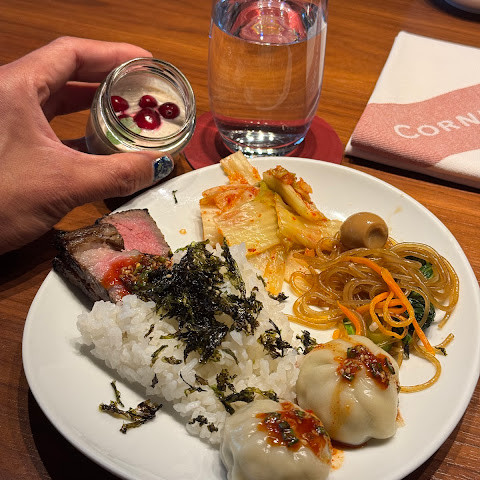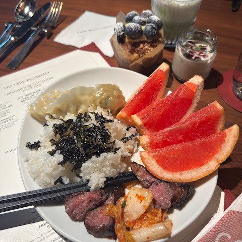 파크 하얏트에 여러 번 묵어 봤는데, 코너스톤은 제가 조식으로 가본 하얏트 레스토랑 중 최고였습니다. 동서양의 음식이 절묘하게 어우러져 있고, 모든 메뉴가 정교하게 플레이팅되어 정말 맛있습니다. 코너스톤의 와규 버전인 한우 등심 스테이크를 강력 추천합니다. 고추장은 따로 주문해 보세요. 앞으로 카빙 스테이션에 고추장이 추가되면 좋겠네요!