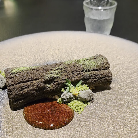 트러플 무국은 맑은 육수에 담긴 매실 경단 위에 꽃 모양으로 만든 트러플 잎이 얹어져 있습니다. 섬세하고 은은한 풍미에 보기에도 아름다웠습니다.