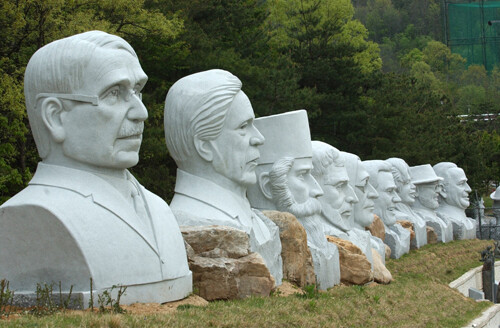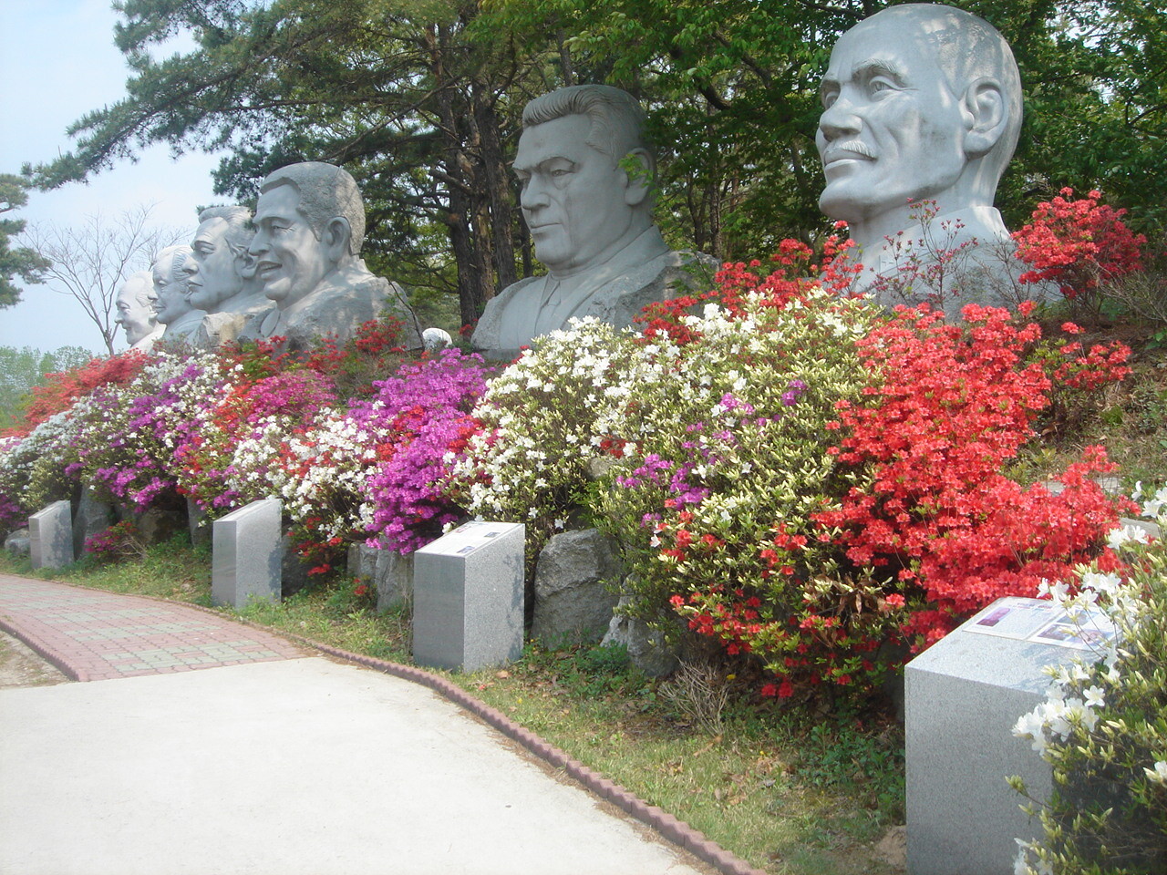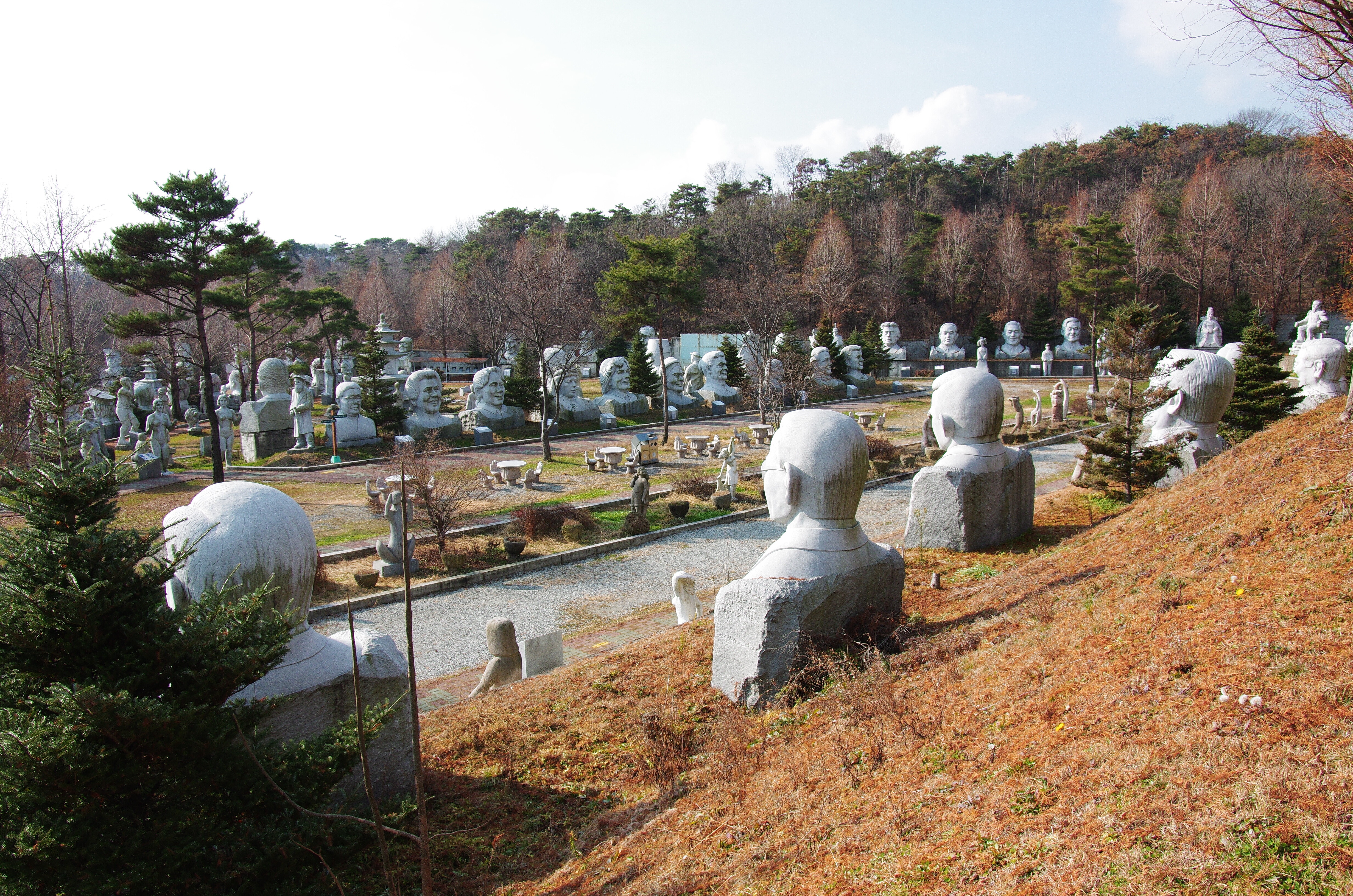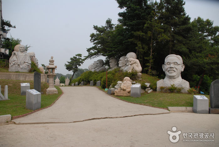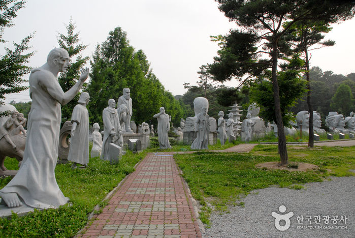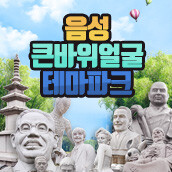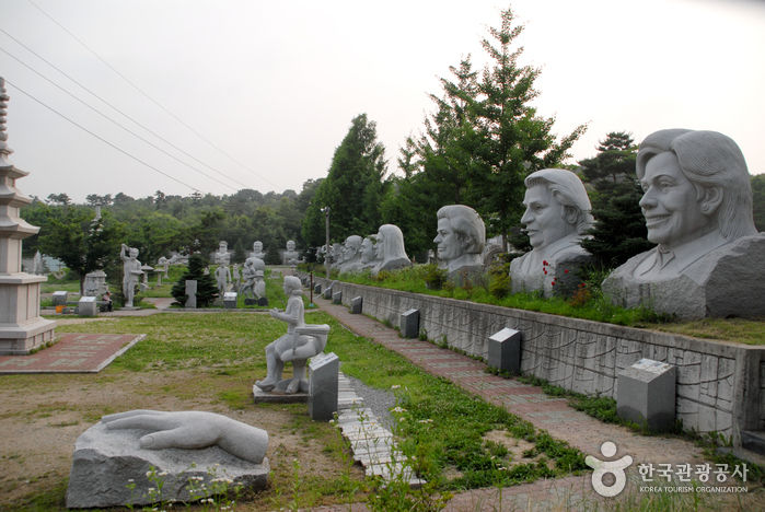 음성군 생극면에 자리한 큰바위얼굴 조각공원은 고대부터 최근까지 세계 역사에 큰 영향을 끼친 인물들을 조각 작품으로 만날 수 있는 곳이다. 입구에 들어서면서부터 수십 개의 인물 조각상이 길게 이어지는데, 세계의 지도자들을 조각한 것을 시작으로 소망 병원으로 이어지는 17만 평의 넓은 부지에 세계의 역사를 그려낸 수천 명의 위대한 인물들을 만나게 된다.