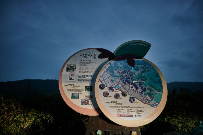 전라남도가 선진국형 농촌 모델 육성을 위해 전국에서 처음으로 지정한 유기농생태마을 제2호로, 농가의 경지 면적 50㏊ 중 대부분이 유기농을 실천하고 있고, 적지 않은 농지에서 무농약 재배를 하고 있다.시목마을은 사면이 병풍처럼 산으로 둘러싸인 분지형 마을이다. 일찍이 1980년대 초부터 친환경농법으로 단감을 재배하기 시작한 이후, 쌀농사와 그 외의 작물까지 친환경 농법으로 재배하면서 지금은 전국적으로 ‘건강한 먹을거리’를 생산하는 마을로 자리를 잡았다. 그래서인지 유독 자연이 건강하고 공기가 깨끗한 느낌인데, 마을 곳곳에는 큰 느티나무까지 있어 따뜻하고 푸근한 고향의 느낌을 전해준다.