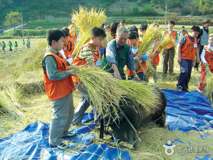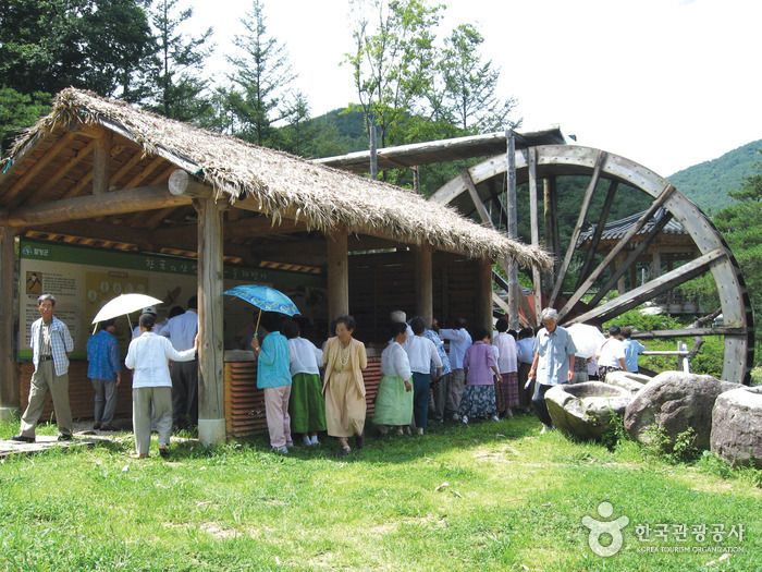 마을 주민 대부분이 농사를 짓고 있는 전형적인 농촌 마을로 조선 말기 실학자인 연암 박지원 선생이 청나라 문물을 둘러보고 온 후, 마을에 최초로 물레방아를 설치 가동했다. 물레방아떡마을 주민들은 용추계곡의 물길을 이용하여 물레방아를 돌리고 농사에 활용했다. 심진헌이라는 이름의 민박 옆에는 예전에 사용했던 물레방아가 복원되어 있다. 이 마을 주민들은 농촌전통테마마을 명칭을 정할 때 물레방아의 본고장임을 알리고, 떡 만드는 체험을 널리 알리고자 [물레방아떡마을]이라고 이름을 지었다. 물레방아떡마을에서 용추계곡 상류로 거슬러 오르다 보면 연암 박지원의 동상이 세워져 있는 물레방아공원을 만나게 된다. 이곳에는 지름 10m, 폭 2m나 되는 거대한 목재 물레방아가 만들어져 있다.
