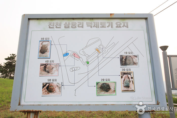 금강의 지류인 미호천(美湖川)을 끼고 전개되어 있는 야산지대인 이곳 이월면 삼용리는 이웃 덕산면 산수리와 더불어 삼국시대 토기 성립 과정을 알려 주는 가마터들이 널리 분포되어 있다. 이 진천 지역 토기 가마터들은 1986년에 중부고속도로 건설공사 일환으로 시행된 문화유적 조사 중 한남대학교 발굴단이 발견하여 연차적인 발굴조사를 통해 삼국시대 초기의 토기, 제작 기술을 규명할 수 있는 많은 자료를 제공하였다. 1990년도에 발굴된 이곳 삼용리 요지군에서도 서기 2~3세기 경의 타날물 토기 가마터 6기(基)가 조사되었다. 길이 2.4m에 불과한 소형부터 7.9m에 이르는 대형까지 크기는 다양하였으나 모두 바닥과 벽은 땅을 파 지하에 설치하고 천정은 지상에 나온 반지하식 등요였다. 이 가마터들의 가장 큰 특징은 연소실의 구조로, 아궁이의 바로 밑이 불을 때는 곳으로 되어 있다. 이와 같은 수직식 연소실(垂直式燃燒室)의 등요는 중국 전국시대 토기요에서 유래된 것이다.