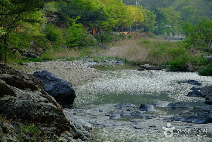 신흥계곡은 봉동, 고산을 지나 경천소재지를 영유하여 운주방면으로 약 2㎞쯤 가다 보면 용복주유소가 나타난다. 이 주유소를 끼고 돌아 2㎞쯤 가면 구제마을이 나타난다. 이 마을을 지나 남동쪽으로 2㎞쯤 가면 첩첩이 쌓인 짙푸른 산봉우리와 맑은 계곡이 눈앞에 펼쳐진다. 물이 차지 않아 아이들과 함께 물놀이하기에 좋은 환경이며 3km 정도 되는 계곡은 생태계가 특이하고 우수한 숲과 하천으로 이뤄져 있고, '나비골'이라 불릴 만큼 멸종위기종 나비와 반딧불이, 가재, 다슬기, 새우 등 수서생물이 풍부한 곳이다.