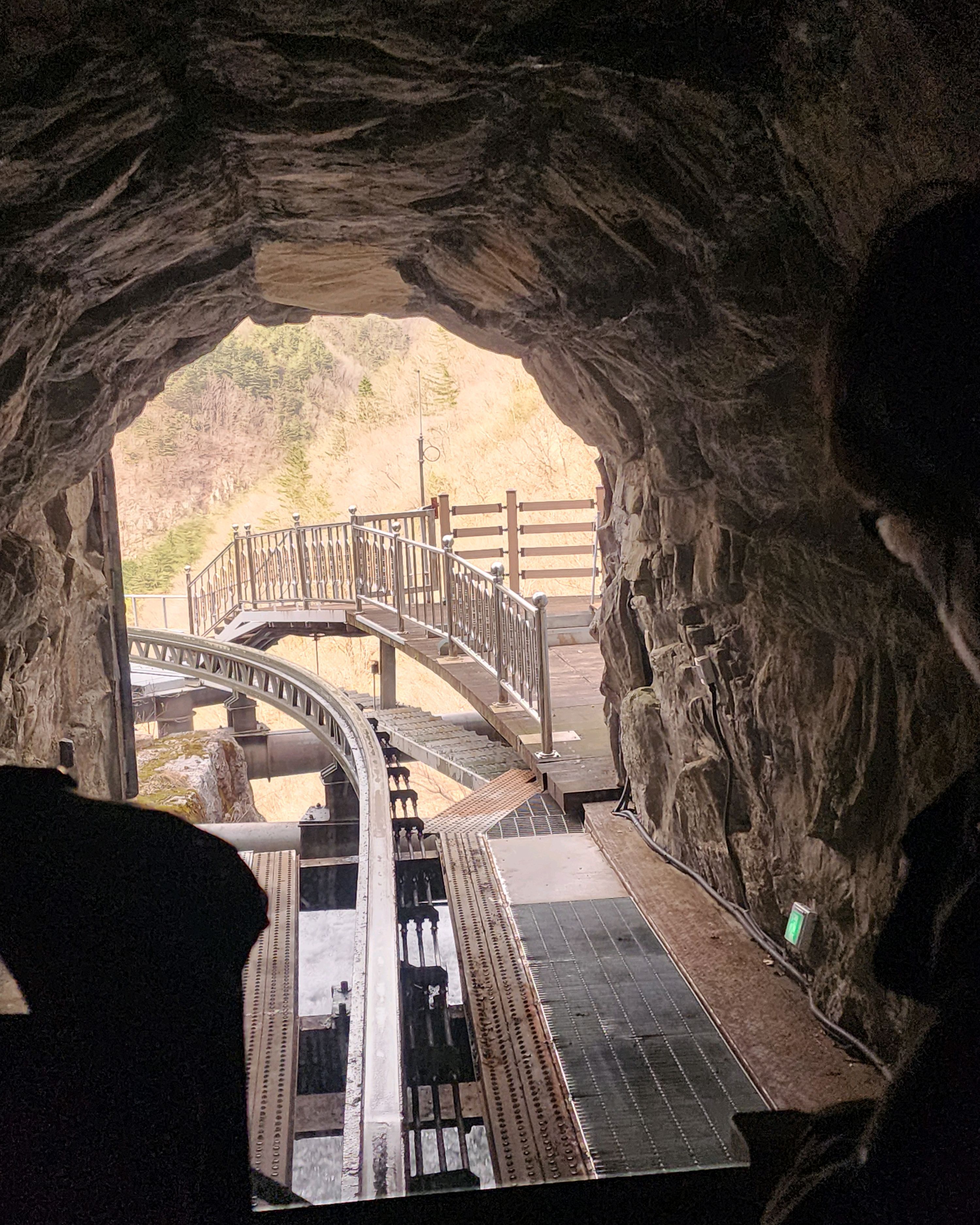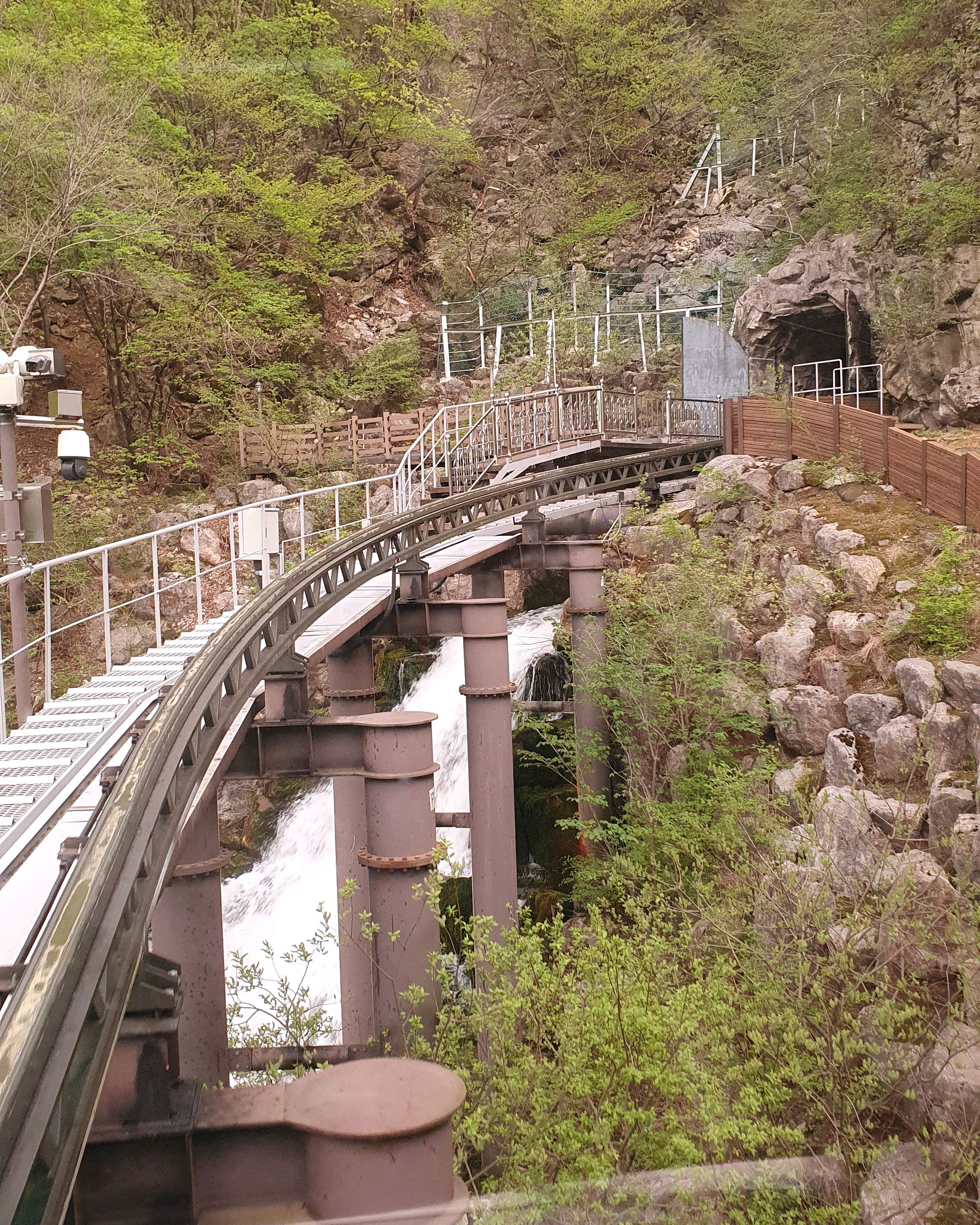 매표소에서 조금 올라가면 대금굴로 가는 모노레일이 있습니다. 굴 안은 촬영이 금지 되었어서 모노레일 구간만 찍을 수 있습니다.