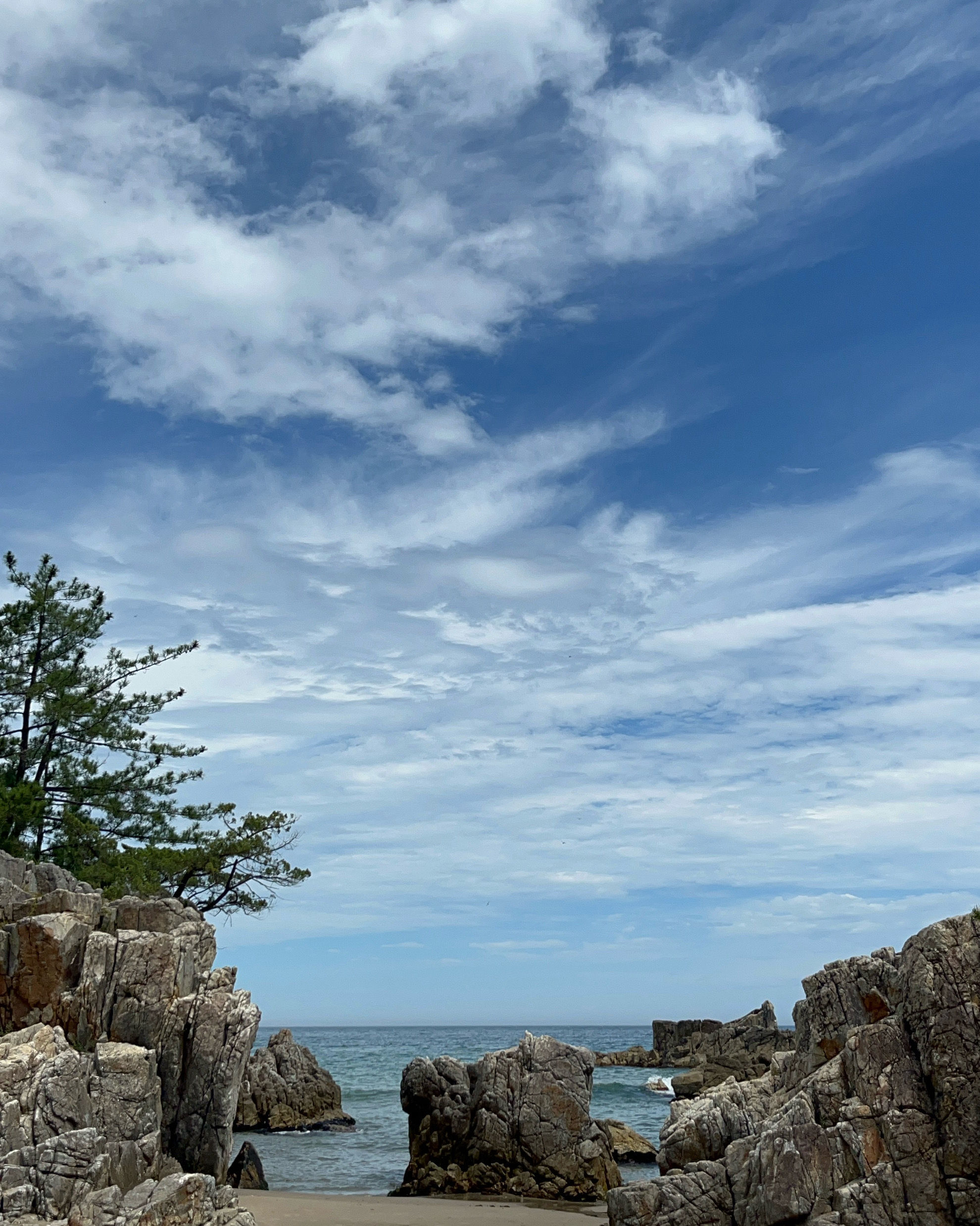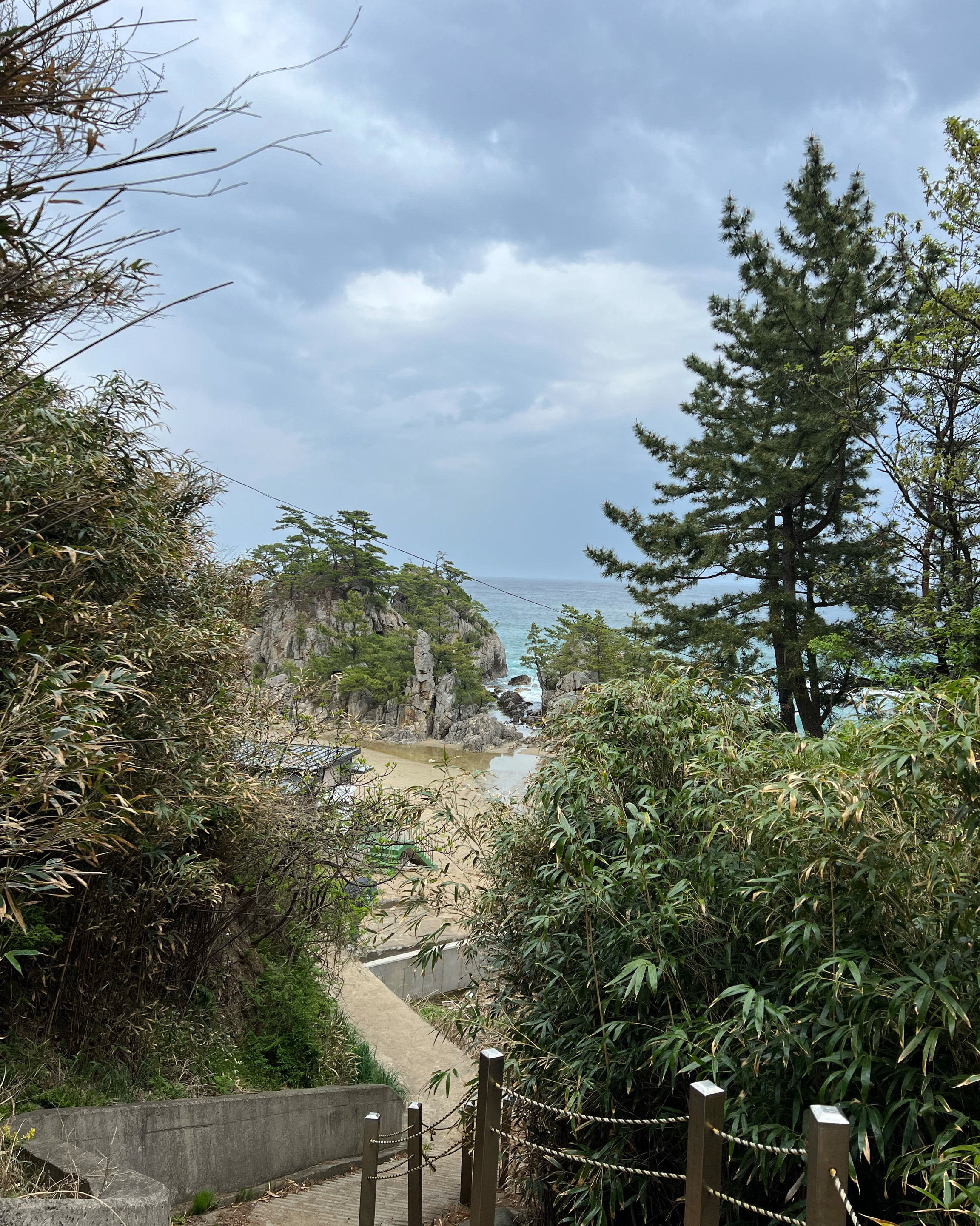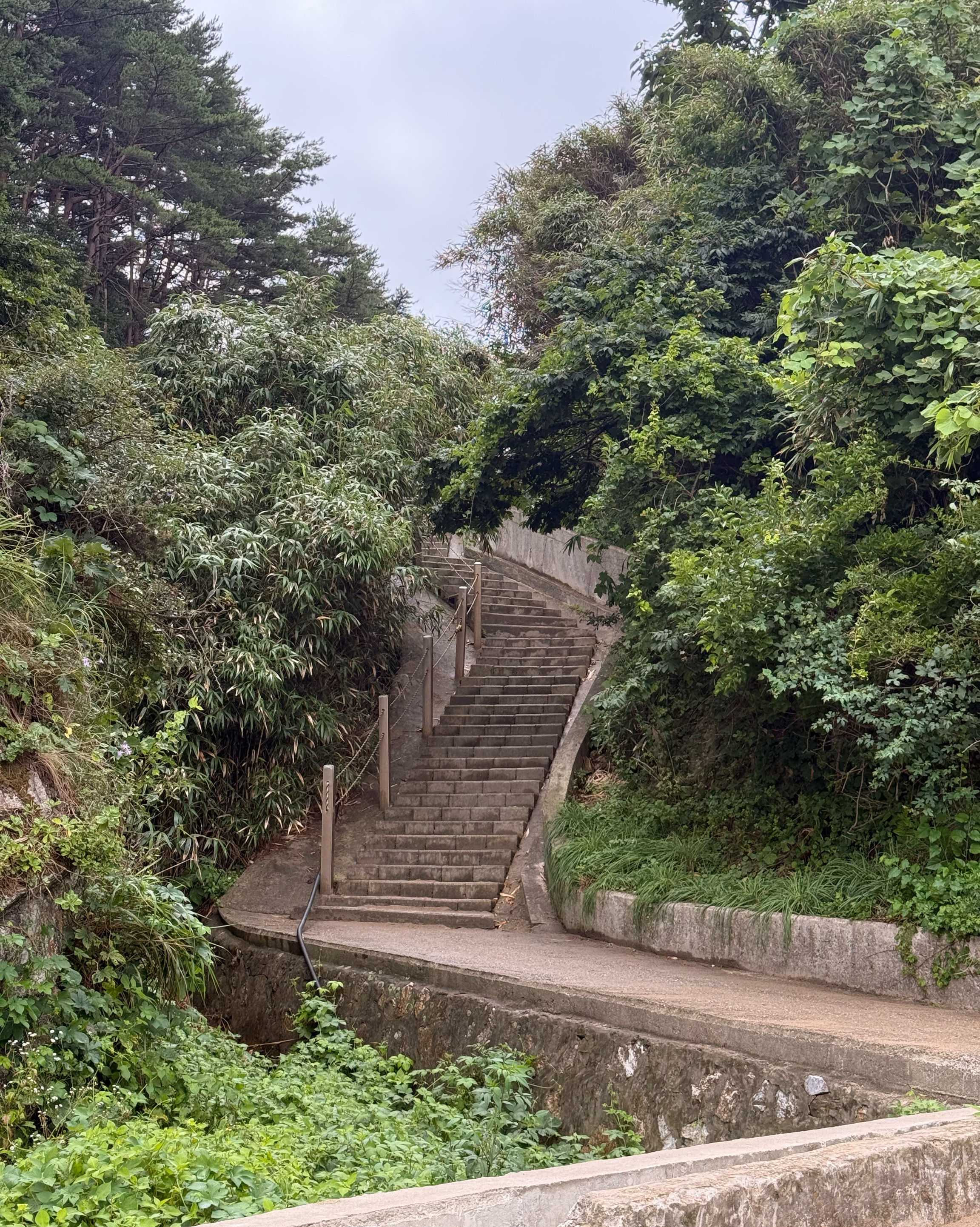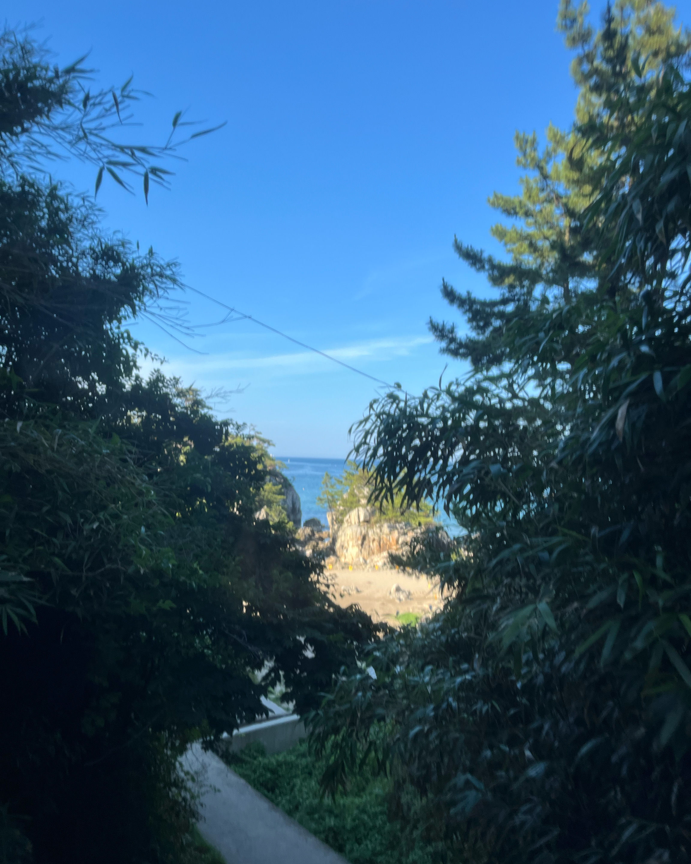 바닷가 내려가는 대나무 산 길 계단부터 경관 자체가 너무 이뻐요!!!! 해수욕 철이라 바위가 많은 쪽은 관리가 어려워서인지 금지구역으로 해놓으셨더라고요~