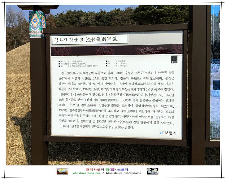 김좌진장군묘는 독립운동가 백야 김좌진(1889∼1930) 장군의 묘소이다. 홍성의 부유한 농가에서 태어난 김좌진은 개화사상이 투철하여 15세 때 집안의 노비문서를 불태우고 논밭을 나누어 주었다. 1905년 호명학교를 설립하여 문맹퇴치에 앞장섰으며, 1913년에는 군자금을 모금하다 3년간 옥고를 치르기도 하였다. 1917년 만주로 건너가 대한광복단에 가입한 이후 북로군정서의 사령관이 되어 독립군을 훈련시켰으며, 이를 기반으로 청산리에서 일본과 전투를 벌여 독립운동사상 최대의 승리를 이루었다. 조국광복을 위해 노력했던 장군은 1930년 공산주의자 박상실에 의해 암살 당했다. 암살 직후 만주땅에 묻혔다가 아내 오숙근 여사가 1940년에 유해를 비밀리에 홍성군 서부면 이호리에 안장하였다. 그 후 1957년 부인이 타계하자 아들 김두한이 현 위치에 합장하였다. 현재 묘역에는 뒤편으로 담장이 설치되어 있으며, 봉분은 아랫부분에 둘레석을 둘렀다. 봉분 앞에는 상석과 장명등이, 옆에는 묘비가 있으며, 좌우에는 말 석상 한 쌍이 세워져 있다. 1989년에는 충청남도 기념물로 지정되었다.