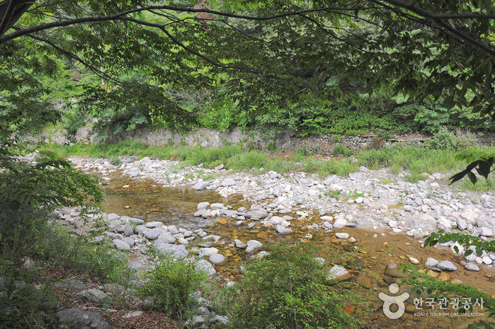 수심이 적당하고 너른 바위를 따라 더 깊이 올라갈 수 있으며 상류에는 사람이 발길이 적어 자연 그대로의 계곡을 마주할 수 있다. 비가 온 후에는 계곡물이 불어날 수 있으니 주의해야 한다. 경기도 청정계곡 일환으로 잘 정비된 이곳은 예전엔 계곡을 따라 테이블을 놓고 사유지처럼 식당들이 사용하던 것을 깨끗이 정비하여 계곡을 찾는 누구나 이용할 수 있게 하였다. 계곡을 따라 데크길이 설치되어 있고 성수기에는 데크다리와 계곡 중앙에서 분수처럼 물이 쏟아지기도 하며 야간경관 조명이 설치되어 밤에는 색다른 풍경을 볼 수 있다. 성수기만 틀어준다는 분수는 겨울에는 가평 빙벽계곡으로도 유명하다. 근처에 식당이나 펜션, 캠핑장 등이 있어서 식사나 휴식을 취하기에도 좋다.