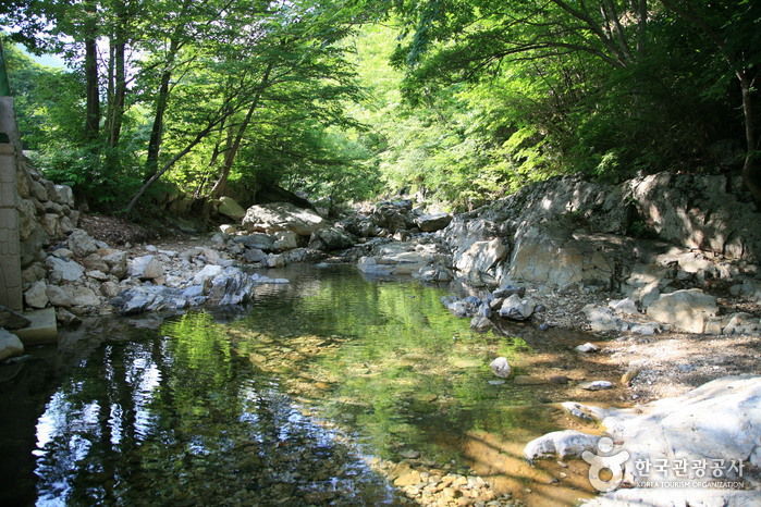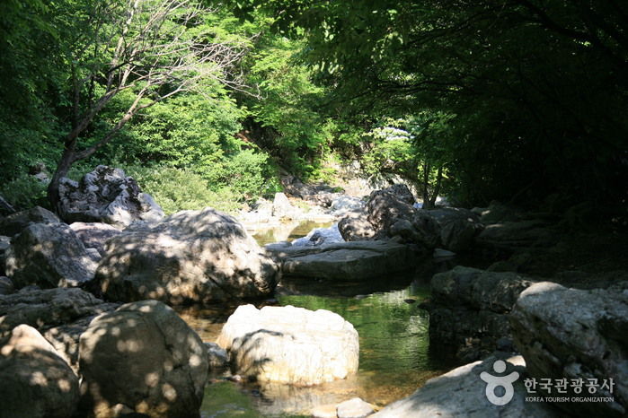700여 평이나 되는 마당바위, 해기소, 감탄이 절로 나는 정밀폭포 등 운장산으로 오르는 등산로 옆의 계곡은 우거진 원시림과 크고 작은 폭포와 어우러진 기암괴석이 몇 폭의 산수화를 이어 놓은 듯 첩첩이 눈 아래 펼쳐진다. 가을철에는 계곡을 물들인 황홍색 단풍은 가히 황홀한 절경을 이루어 어느 국립공원에 견주어도 모자람이 없을 풍광이다. 운장산은 해발 1,000m 이상으로 높지만, 가족들이 오르기에 무리가 없는 완만하고 시원한 코스로 모든 가족이 함께 한번 도전해 볼 만한 하다. 주변에 국립 운장산자연휴양림, 천황사가 있어 연계 관광을 할 수 있다.