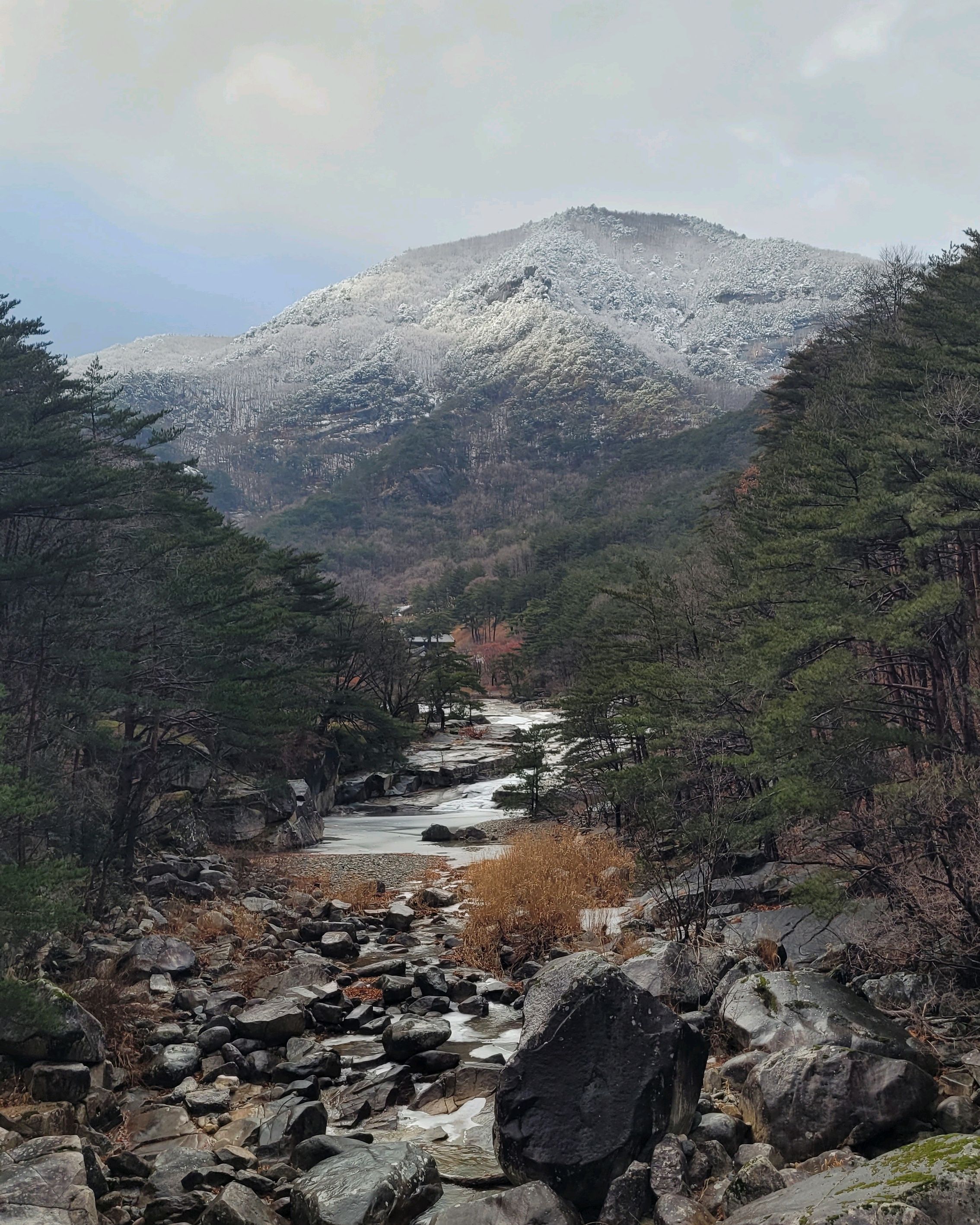 운 좋게 눈 내린 다음날 방문해서 설산 배경의 무릉계곡을 볼 수 있었어요. 절경이었습니다.