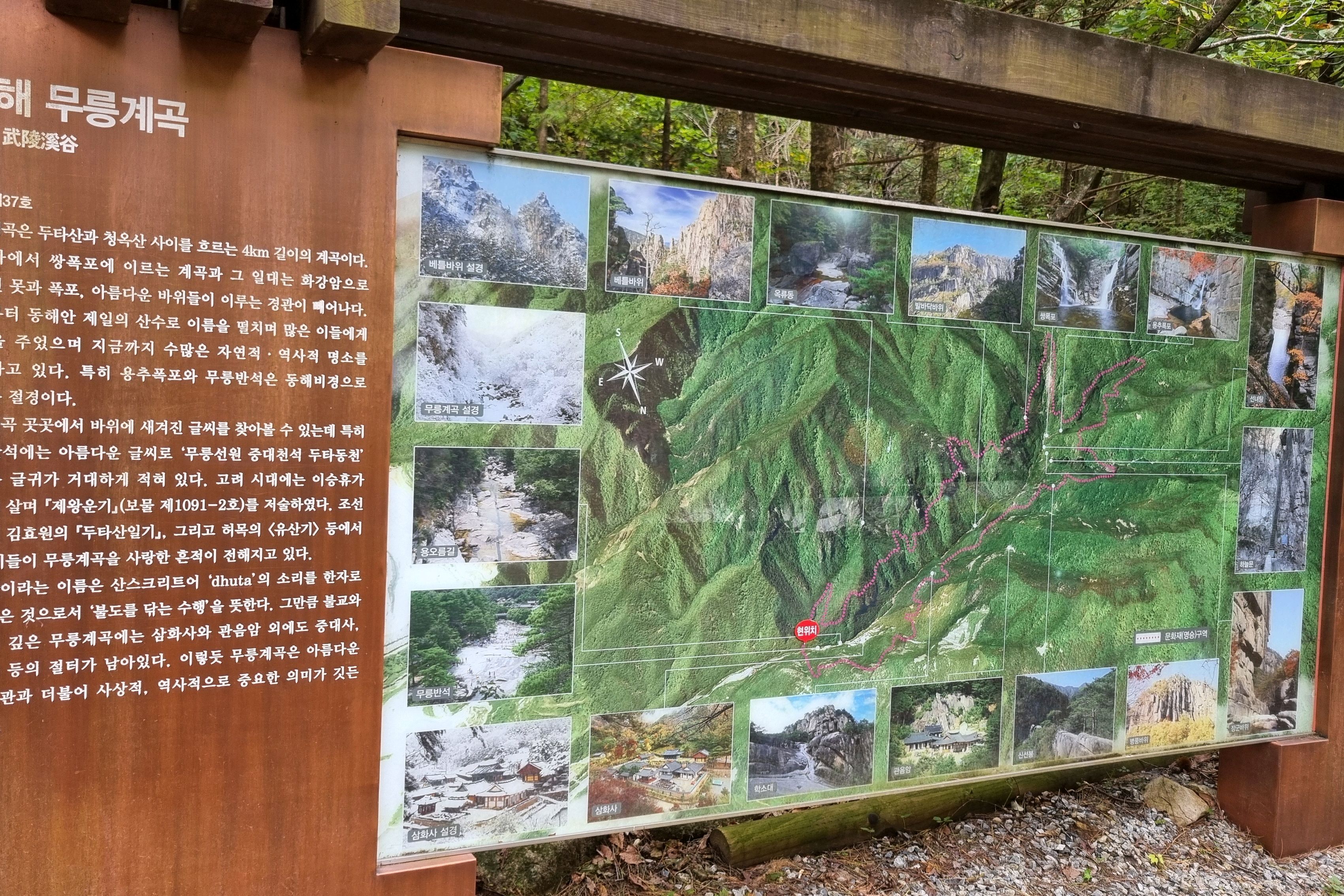 무릉계곡을 방문했습니다. 이곳은 과연 **'무릉도원'**이라는 별칭이 아깝지 않을 정도로 아름다운 자연 경관을 자랑하는 곳이었습니다.