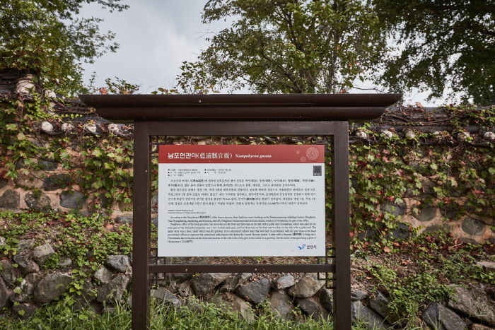 조선시대 여지도서(輿地圖書)에 의하면 남포읍성의 관아 건물로서, 객사(客舍), 동헌(東軒), 아사(衙舍), 향청(鄕廳), 작청(作廳), 현사(縣司) 등 많은 건물이 있었으나, 현재 남아있는 것은 동헌, 내삼문 그리고 관아문 진서루이다. 이중 현감 집무실인 동헌은 정면 7칸 측면 3칸의 팔작지붕의 건물이며, 남포현 관아의 정문으로 사용되었던 관아문은 정면 3칸 측면 2칸의 2층 문루 건물로 아래는 출입구, 위는 누마루를 설치하고, 팔작지붕이며, 조선왕조의 중앙 집권을 상징하기 위해 당시 전국에 똑같이 만들어진 관아문 양식을 충실히 따르고 있으며 진서루(鎭西樓)라는 현판이 걸려있다. 또한 내삼문은 정면 7칸 측면 1칸인데, 중앙은 솟을대문 1칸이 있어 출입구 역할을 하였고, 건물의 정면에는 옥산아문(玉山衙門)이라는 현판이 걸려있다.