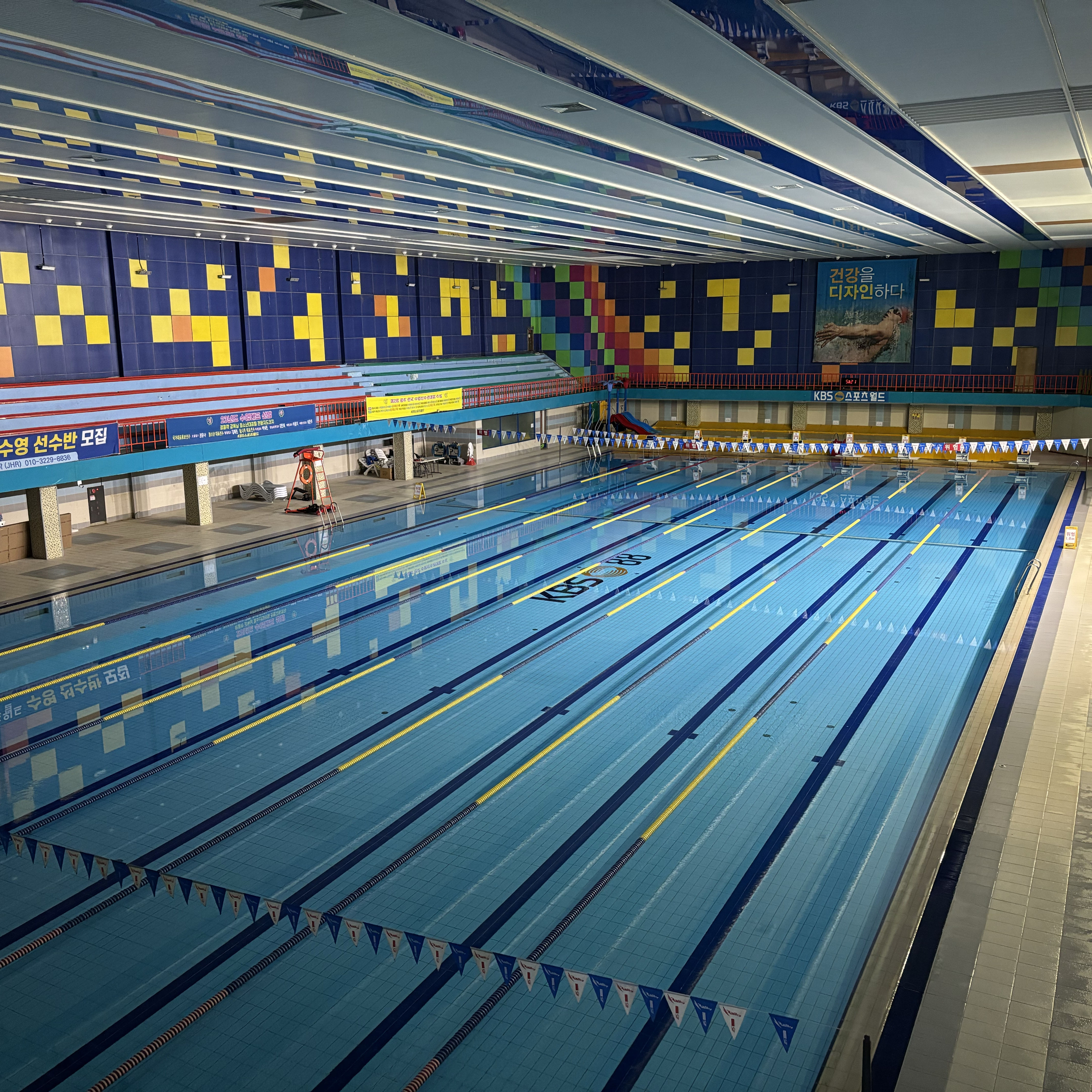 50m 레인이라 운동 하기 좋아요. 주말에 자유수영은 사람이 좀 많아요. 수영 레인이 중,상급이 좀 섞여 있어서 애매한거같아요. 중급은 중급 상급은 상급 이라고 명확하게 푯말을 정확히 세워주시면 좋을듯.. 오래된 곳이지만 시설은 생각보다 깔끔하고 관리가 잘 되어 있습니다.