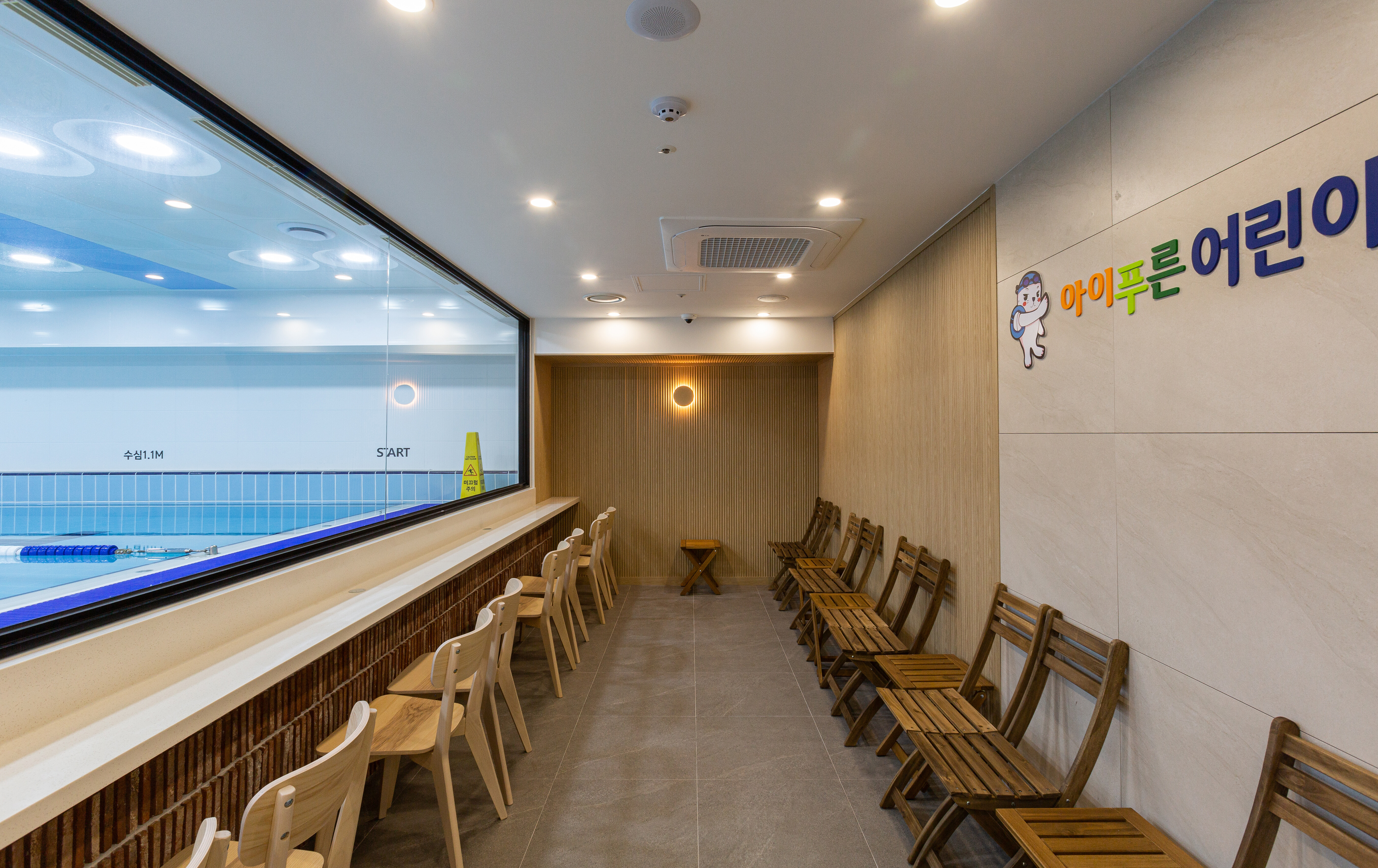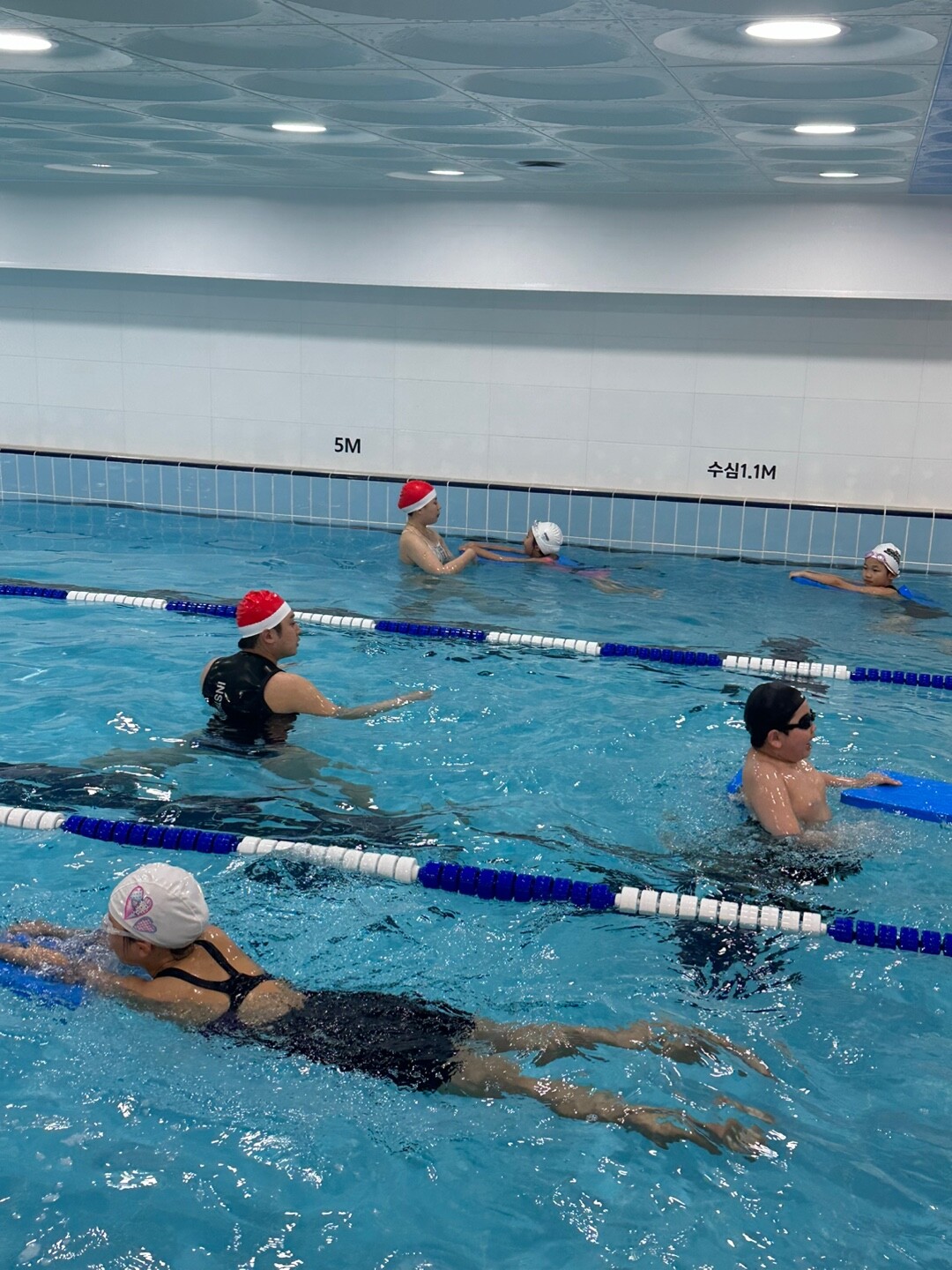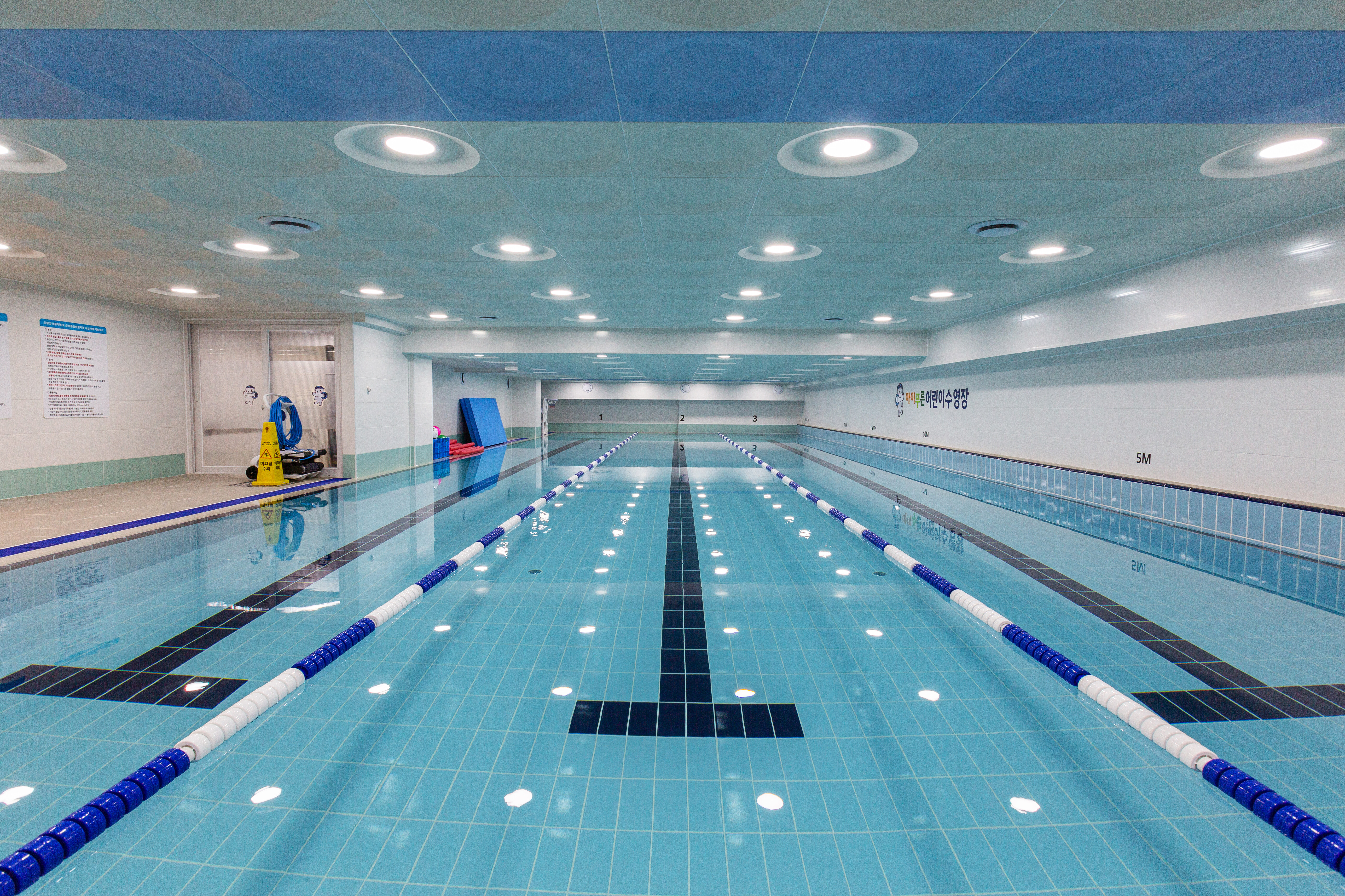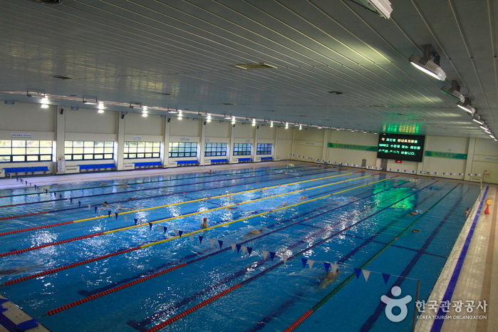 수영장은 유아풀이 따로 있고 성인풀은 50m 10개 레인으로 걷기레인 1개, 선수훈련레인 1개, 오리발레인 1개, 나머지는 실력별로 자유수영할 수 있는 레인으로 나눠놨다. 레인 상관 없이 스노클, 패들, 킥판 등의 도구들을 자유롭게 사용할 수 있다.