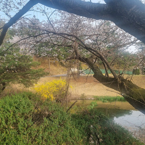 골프장 진입부터 활짝 핀 벚꽃. 골드cc 내 벚꽃도 만개 했습니다.