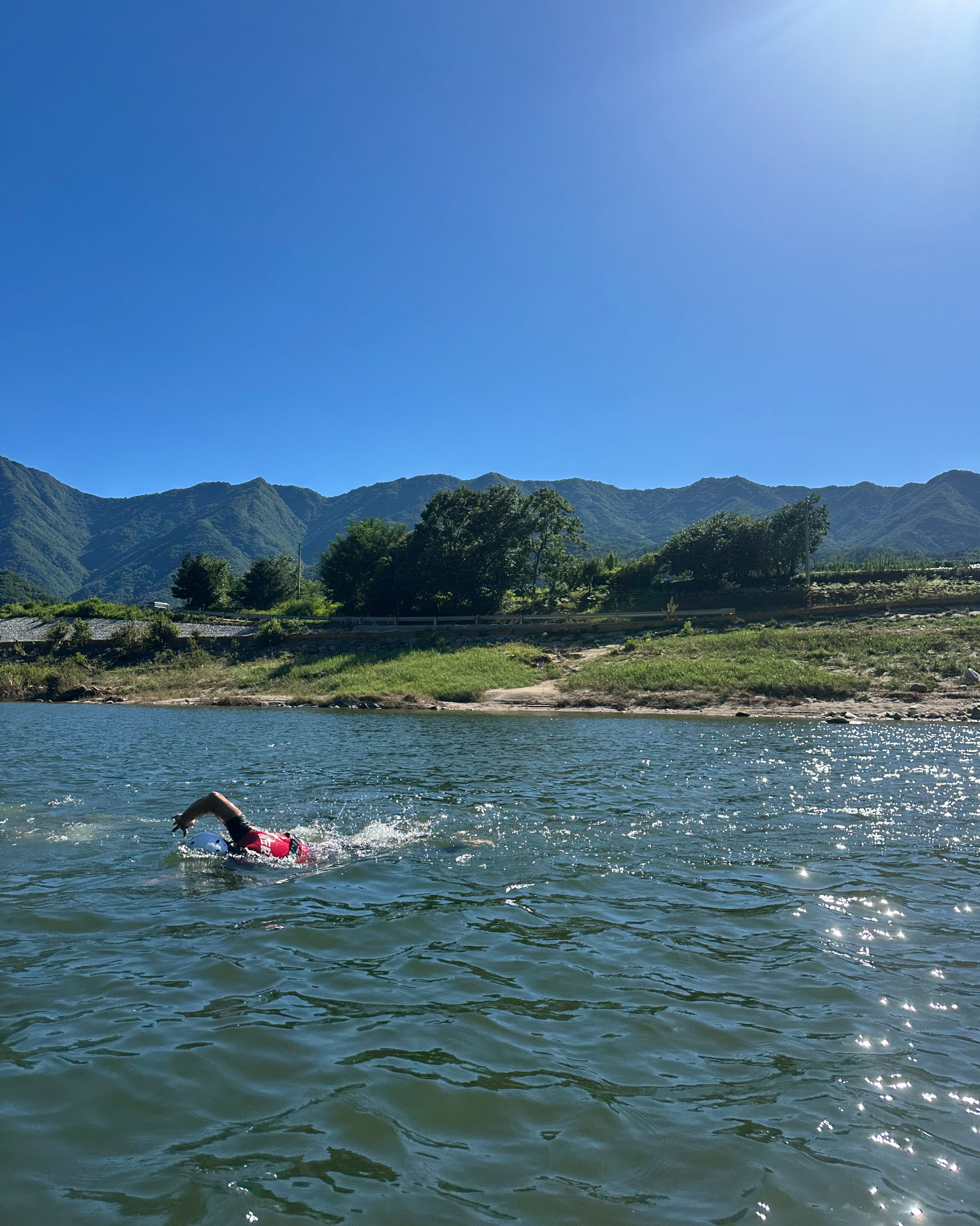 강에서 친구들이랑 물놀이도 하고, 풍경 구경하면서 힐링 굿