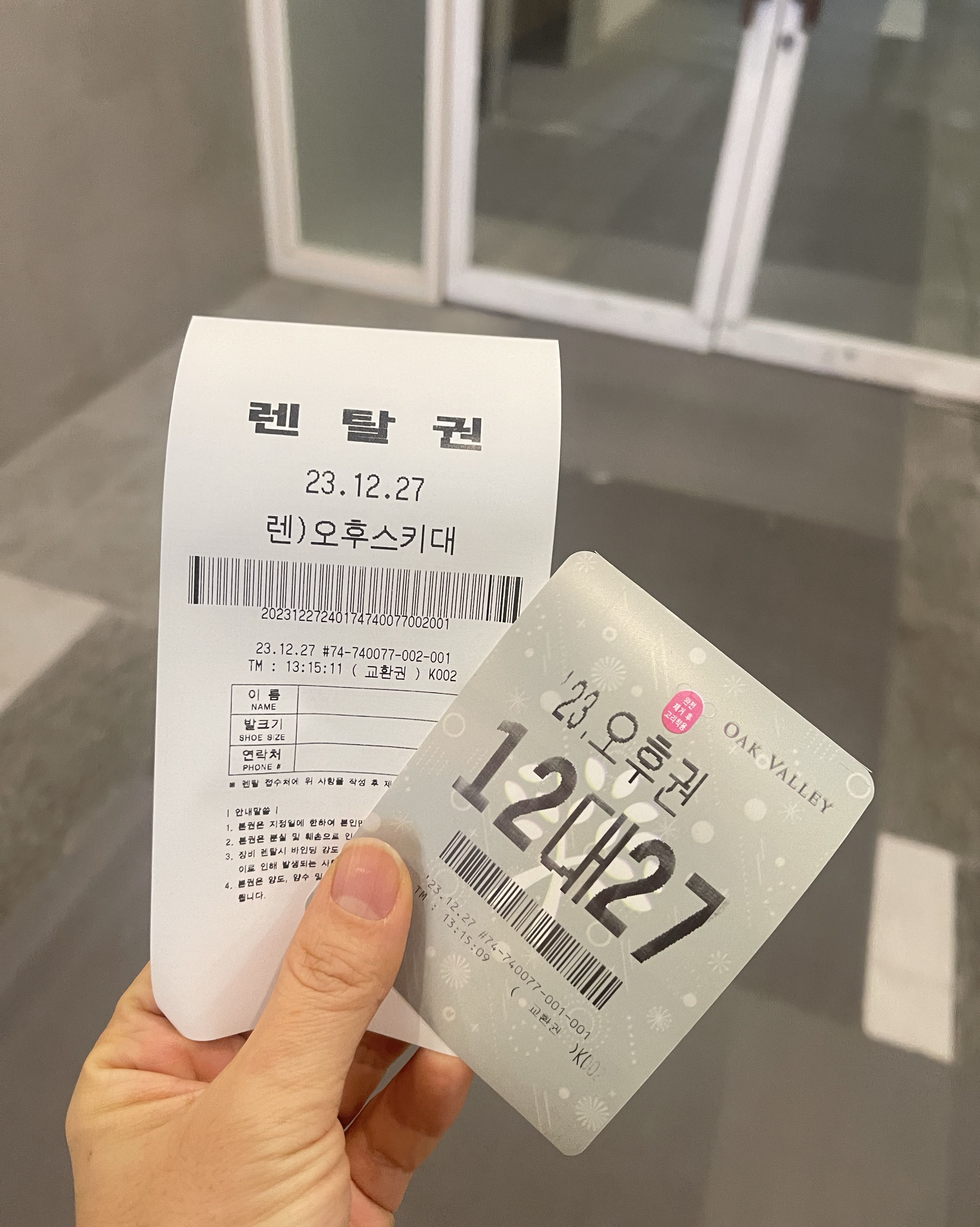 시즌권으로 아이장비 40% 할인받아서 오야보드 렌탈 저렴하게 장비렌탈했어요~