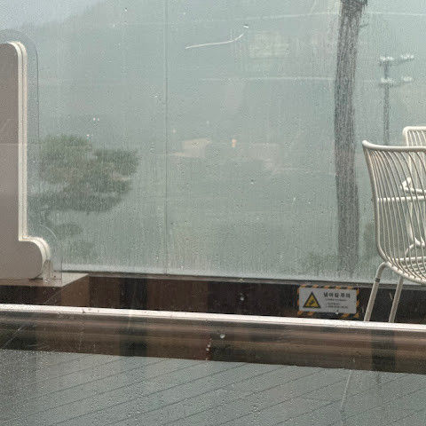 란딩 마치고 난후 점심식사중 마침 비가오네요.