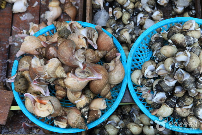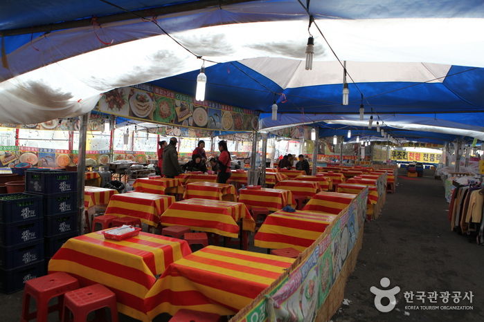 장터의 안쪽으로는 횟집들이 즐비하게 늘어서서 장터와 같이 위치하고 있어 바다음식을 애호하는 미식가들에게는 장 보기와 함께 좋은 여건으로 각광받으며 많은 애호가들이 즐겨 찾고 있다. 여느 시장에서와 마찬가지의 각종 향토음식과 나물, 잡곡류 도소매가 이루어지며 중에서도 구룡포장에서 갓 건져 올린 싱싱한 각종 해물류가 즐비하게 늘어서 있는 그야말로 싱싱한 바다음식의 장터 그대로라 해도 과언이 아니다. 특히 경북도내 어획고의 70% 이상을 차지하고 있는 구룡포항의 오징어는 구룡포 장의 특산물이자 맛 또한 일품으로 바다음식을 선호하는 미식가들 사이에서는 널리 알려진 사실로 왕래의 발길이 끊이지 않는다.