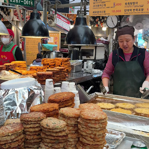 이 전통 시장에는 맛있는 음식과 기념품이 정말 많아요! 저는 여기서 아주 좋은 품질의 이불도 샀답니다. 서울에 오시면 꼭 이 시장에 들러서 맛있는 음식도 드셔보세요! ♥️
