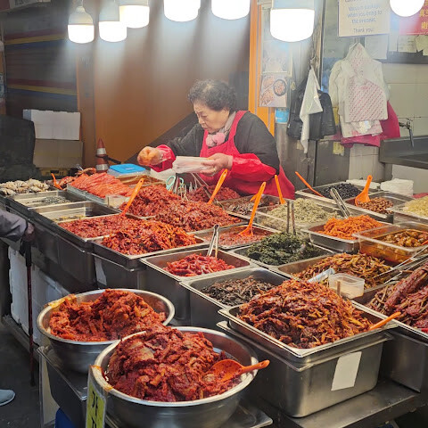 이 전통 시장에는 맛있는 음식과 기념품이 정말 많아요! 저도 여기서 아주 질 좋은 이불을 샀답니다. 서울에 오시면 꼭 이 시장에 들러서 맛있는 음식도 드셔보세요! ♥️