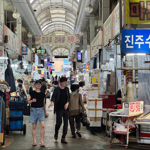 전통시장에서 쇼핑하는 것을 좋아하는 사람들에게 이 시장은 3~4시간 정도면 충분히 둘러볼 수 있는 곳입니다. 신선한 고기, 채소, 과일 외에도 떡볶이, 김밥, 족발, 닭고기, 떡, 어묵, 국수 등 포장해서 가져갈 수 있는 조리된 음식과 두유와 같은 관련 조리식품도 있습니다. 해산물 요리를 파는 해산물 가게도 있습니다.