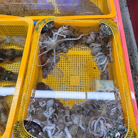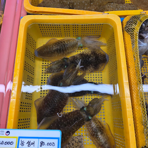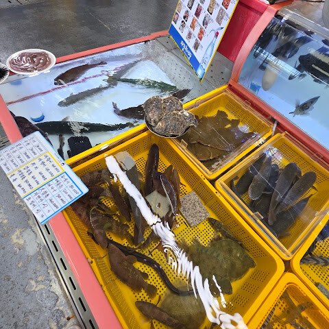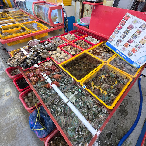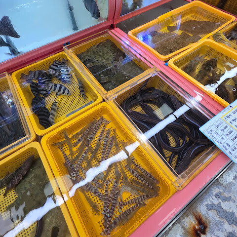 다양한 종류의 생선과 해산물이 있습니다. 대부분이 살아 있고, 깨끗한 물과 산소를 이용할 수 있습니다. 다만 아쉬운 점은 냄새인데, 저는 냄새를 알아채기가 어렵습니다.