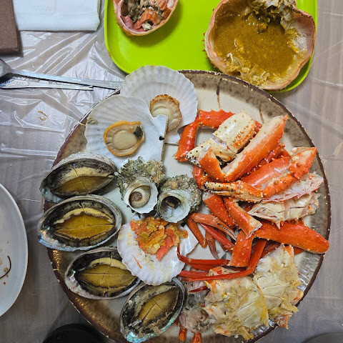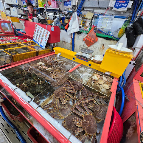 이 경험에 대해 꼭 써야겠어요. 많은 사람들이 이곳이 비싸다고 계속 말했지만, 저는 자갈치 시장을 방문한 것을 후회하지 않아요. 혹시 방문하신다면 114번 매장의 친절한 커플을 꼭 방문해 보세요. 정말 예의 바르고 따뜻하며 영어도 조금은 할 줄 아는 분이에요. 저희는 대게를 주문했는데, 한국에서 제가 가장 좋아하는 음식이었어요. 다른 해산물도 양이 많고 정말 신선했어요!