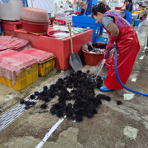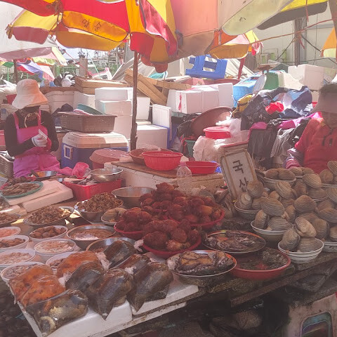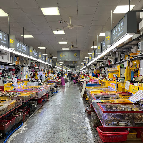 제 친구가 부산에 있는 동안 유명한 수산시장을 경험하고 싶어 했는데, 사실 저는 해산물을 먹지 않지만, 그래도 친구의 도움을 받기 위해 따라갔어요.