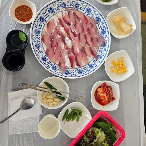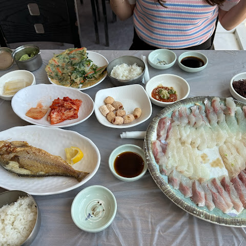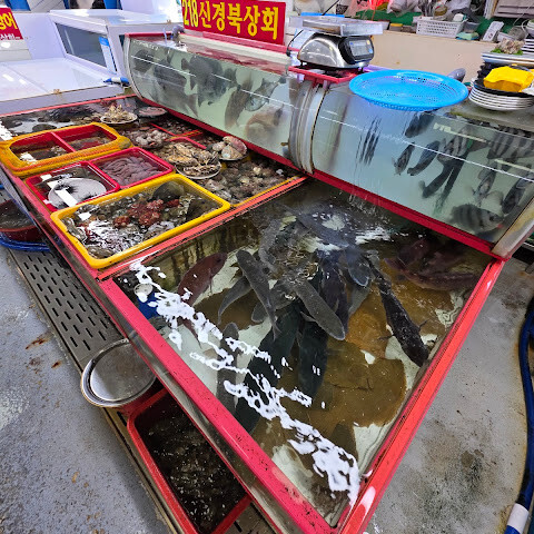 정말 다들 너무 친절. 1층서 생선 주문하고 2층서 식사하는 구조. 신경북상회 갔는데 사장님 정말 친절하시구 마침 행사중인 재래시장 상품권 받을 수 있게 해주셔서 식사하고 엄청 챙겨와서 너무 감사했네요.