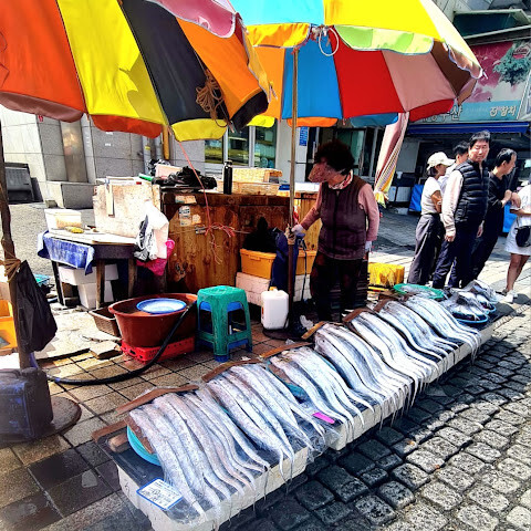 한국에서 가장 큰 재래시장으로 온갖 종류의 해산물을 판매합니다. 시장은 건물 밖 거리에서 시작하여 건물 내부로 이어지며, 해산물의 종류가 엄청나게 많습니다.