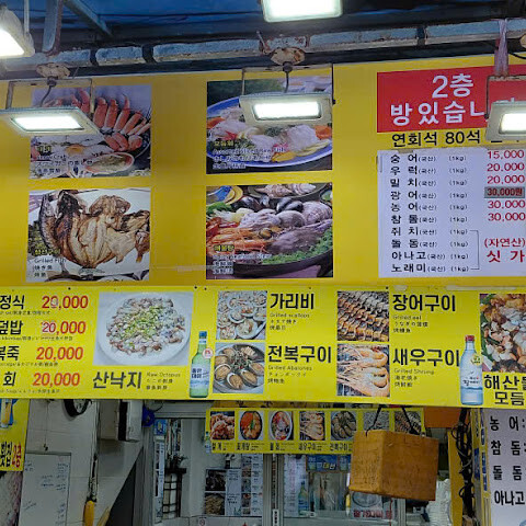 정말 다들 너무 친절. 1층서 생선 주문하고 2층서 식사하는 구조. 신경북상회 갔는데 사장님 정말 친절하시구 마침 행사중인 재래시장 상품권 받을 수 있게 해주셔서 식사하고 엄청 챙겨와서 너무 감사했네요.