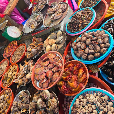 해산물을 전문으로 판매하는 곳으로, 노점도 엄청나게 많았지만, 가격이 적당한지 아닌지는 판단할 수 없어서, 관광 명소로 생각하고 먹고 마시고, 지역 음식을 체험하기로 했습니다...
