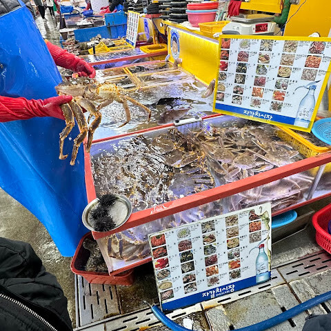 이 경험에 대해 꼭 써야겠어요. 많은 사람들이 이곳이 비싸다고 계속 말했지만, 저는 자갈치 시장을 방문한 것을 후회하지 않아요. 혹시 방문하신다면 114번 매장의 친절한 커플을 꼭 방문해 보세요. 정말 예의 바르고 따뜻하며 영어도 조금은 할 줄 아는 분이에요. 저희는 대게를 주문했는데, 한국에서 제가 가장 좋아하는 음식이었어요. 다른 해산물도 양이 많고 정말 신선했어요!