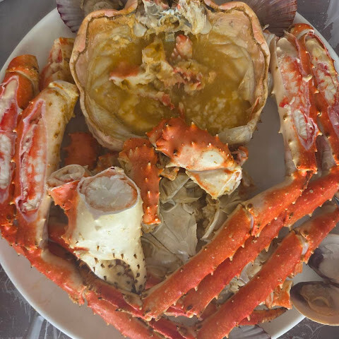 호텔이 바로 근처에 있어서 아침 식사를 하러 갔습니다. 210번 매대에 가서 킹크랩을 먹고 싶었는데, 주인이 인원이 둘뿐이라 킹크랩(2.5kg)을 다 먹지 못할 것 같아서 대게(1.6kg)를 주문하라고 했습니다.