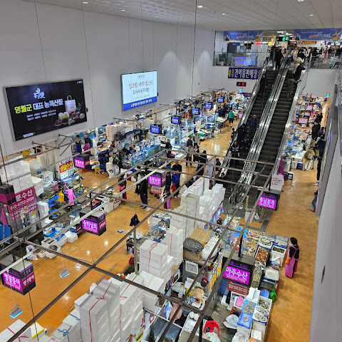 1층 해산물 시장은 사람들로 북적거렸어요. 해산물을 꽤 많이 샀는데, 처음 80만 원이었던 가격을 45만 원까지 깎았어요. 아주머니가 외지인인 척 엄청 바가지를 씌우는 게 눈에 띄었죠! 😂