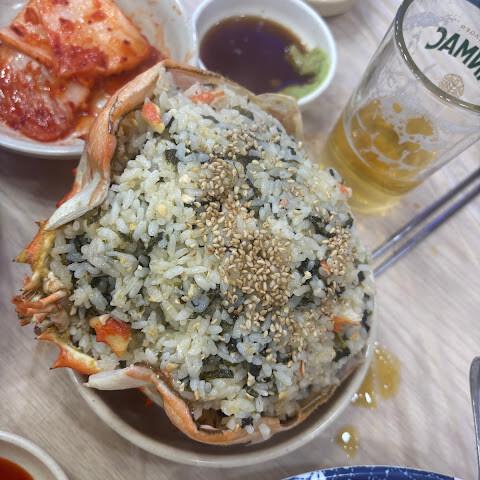 게는 완벽하게 쪄져서 달콤하고 육즙이 가득했습니다. 특히 게 육즙에 볶아준 볶음밥을 주문한 게 가장 기억에 남았습니다. 정말 맛있었고, 꼭 주문해야 할 메뉴였습니다.