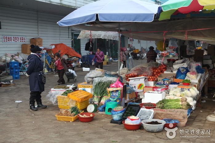 장수군이 아무래도 깊은 내륙지역이다 보니 오일장에서 흔히 볼 수 있는 노상 횟집이나 빨간 대야를 줄지어 진열한 다양한 생선 등의 노점은 보기 어렵지만 소박한 오일장이 주는 푸근한 인심을 느낄 수 있다. 아케이드 형태의 시장은 천정이 덮여 있어 비가 와도 쇼핑이 가능하며 전용주차장이 있어 주차가 가능하여 이용이 편리하다. 주변에 둘러볼 곳으로 논개사당, 뜬봉샘생태공원, 전해산기념관 등이 있다. |