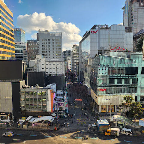 명동에 있는 백화점과 면세점이 합체한 거대한 빌딩.