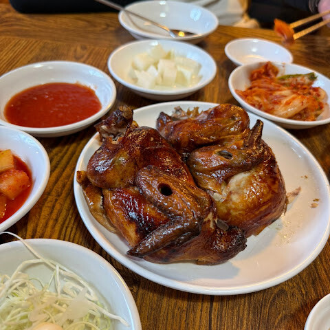 삼계탕으로 유명한 곳인데, 명성에 걸맞은 맛이었습니다. 인삼닭탕은 진하고 속이 든든해지는 풍미가 가득했어요. 다만, 닭구이는 기대했던 것만큼 촉촉하지 않고 약간 건조했습니다. 그래도 삼계탕 때문에라도 꼭 한번 방문할 만한 곳이에요!