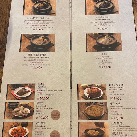분위기도 좋고 음식도 맛있어요. 모든 메뉴에 인삼탕이 포함되어 있네요.
