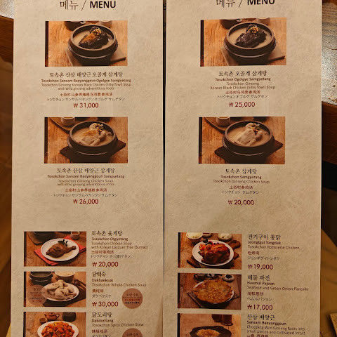 Tosokchon (토속촌) near Gyeongbokgung Palace is one of Seoul’s most famous spots for Samgyetang (ginseng chicken soup). It’s always busy with both locals and tourists, and for good reason.