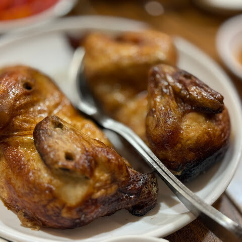 처음 주문한 전기구이통닭구이는 기름기 쫙 빼고 짚향 진하게 우러나서 전통적인 닭맛에 가까우면서도 구워서 그런지 크리스피하면서 속은 부드럽다.