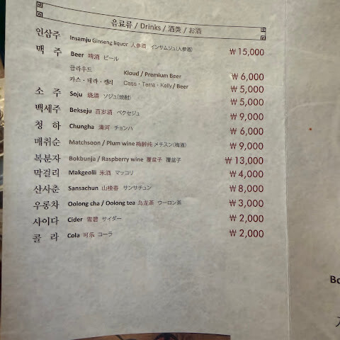 식당은 넓고 좌석도 많았으며, 직원들은 친절하고 정중했습니다. 음식도 훌륭했고 전체적인 경험도 만족스러웠습니다. 떠나기 전에 기념품으로 인삼주 한 병을 샀습니다.