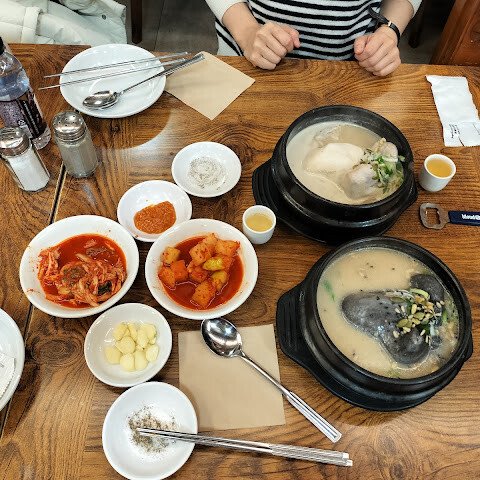 경복궁 근처에 위치한 이 식당은 삼계탕으로 유명합니다. 좌석은 넉넉한 편이지만, 매우 붐비는 경향이 있어 줄을 서야 하는 경우가 흔합니다. 특히 점심이나 저녁 피크 시간을 피해서 일찍 도착하는 것이 좋습니다. 다행히 저는 방문했을 때 바로 자리에 앉을 수 있었습니다.
