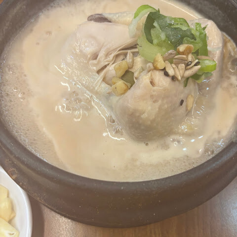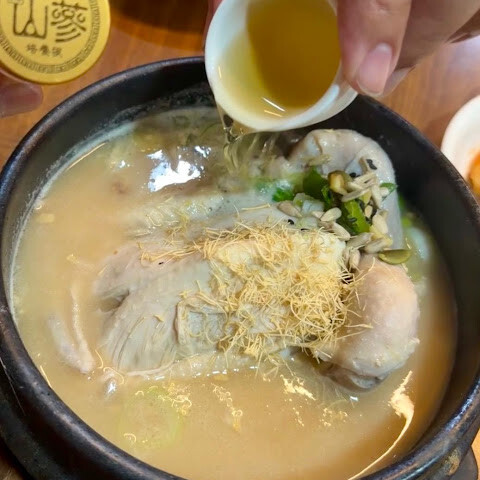 컨디션이 좀 안 좋았는데, 마침 그날 날씨도 평소보다 춥고 비가 왔어요. 삼계탕이 먹고 싶어서 서울 가기 전에 미리 어디가 좋을지 알아봤었죠. 한국인 친구에게 어디 가는지 물어보고 같이 토속촌 삼계탕에 갔는데, 친구도 만족했어요. 대기 시간도 그렇게 길지 않았어요. 줄이 길긴 했지만 20분 정도 기다린 것 같아요. 친구는 여기 삼계탕이 평소에 가던 곳보다 훨씬 맛있다고 하더라고요. 저도 동감이에요. 국물이 다른 곳보다 훨씬 진하고 진했어요. 저는 평소에 술을 안 마셔서 삼계탕에 인삼주를 조금 넣어 마셨는데, 술은 날아가 버리고 술맛은 전혀 안 나서 좋았어요. 우리 셋 다 남김없이 다 먹었으니 정말 맛있었던 거죠! 다음에 서울 오면 꼭 다시 갈 거예요! 💕