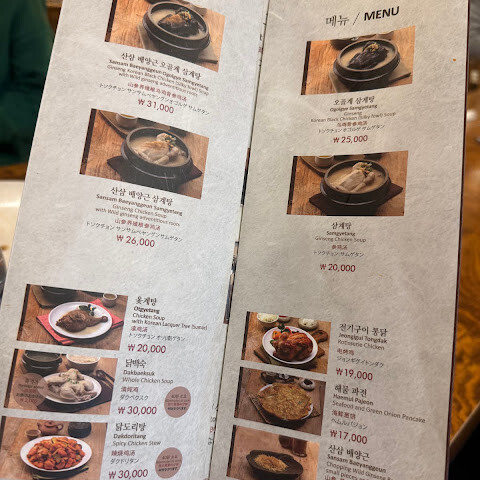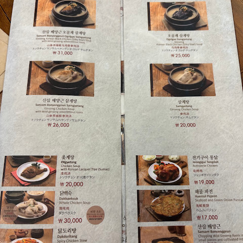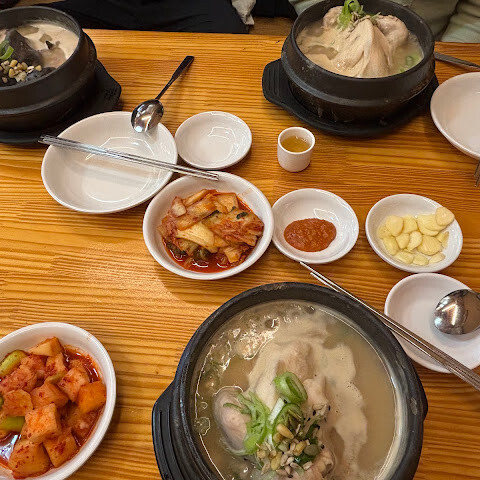 아늑한 전통 방들과 아름다운 안뜰이 있는 멋진 인테리어의 식당입니다. 특히 인삼 닭고기탕이 일품입니다. 국물은 약초 향이 강하지 않으면서도 진하고 걸쭉한 맛이 일품입니다. 닭고기 안에는 찹쌀이 들어있습니다. 1인분에 1인분씩 주문하는 것을 추천하는데, 양이 넉넉해서 좋습니다.