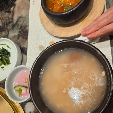 이번에는 진하고 편안하면서도 깊은 풍미의 갈비탕과 꼭 시켜야 할 사이드 메뉴인 보쌈김치를 주문했습니다. 이 조합만으로도 방문할 가치가 충분했고, 오랜 리노베이션에도 불구하고 왜 이곳이 여전히 인기 있는지 다시 한번 깨달았습니다.